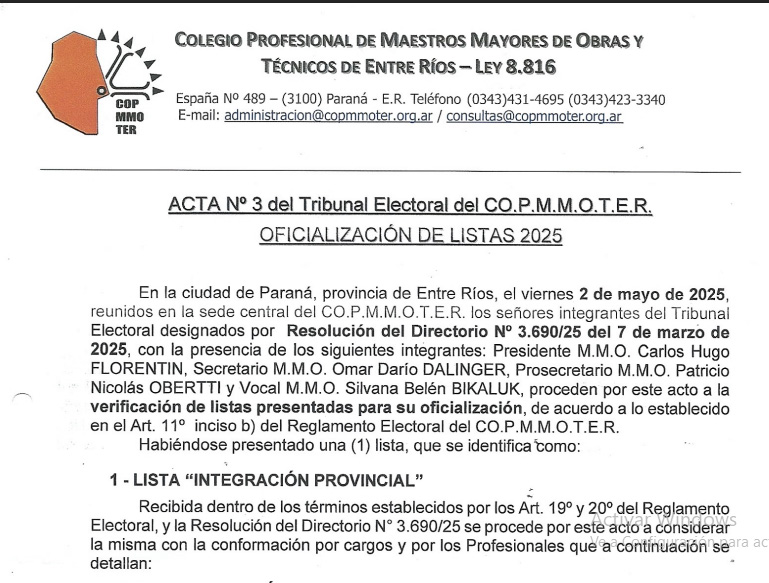 El Directorio del CO.P.M.M.O.T.E.R. informa que a través de la Resolución Nº 3.690/25 del pasado 7 de marzo se constituyó